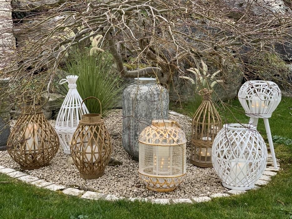 Laterne aus Bambus mit Glaseinsatz und Kordel