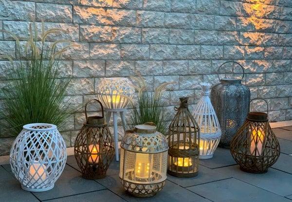 Laterne Holz aus Bambus rund auf Füssen mit Glaseinsatz