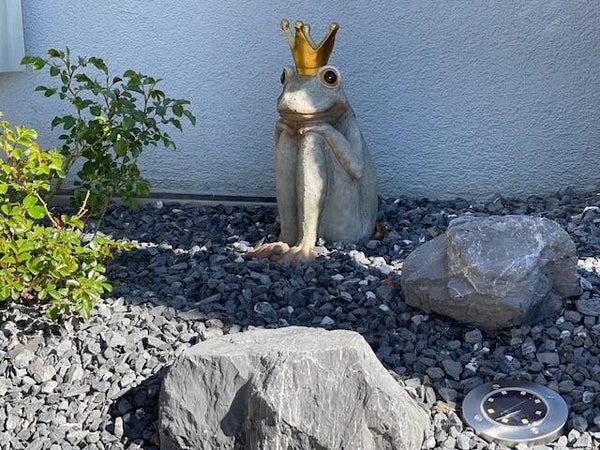 Froschkönig sitzend mit angezogenen Knien aus Polyresin