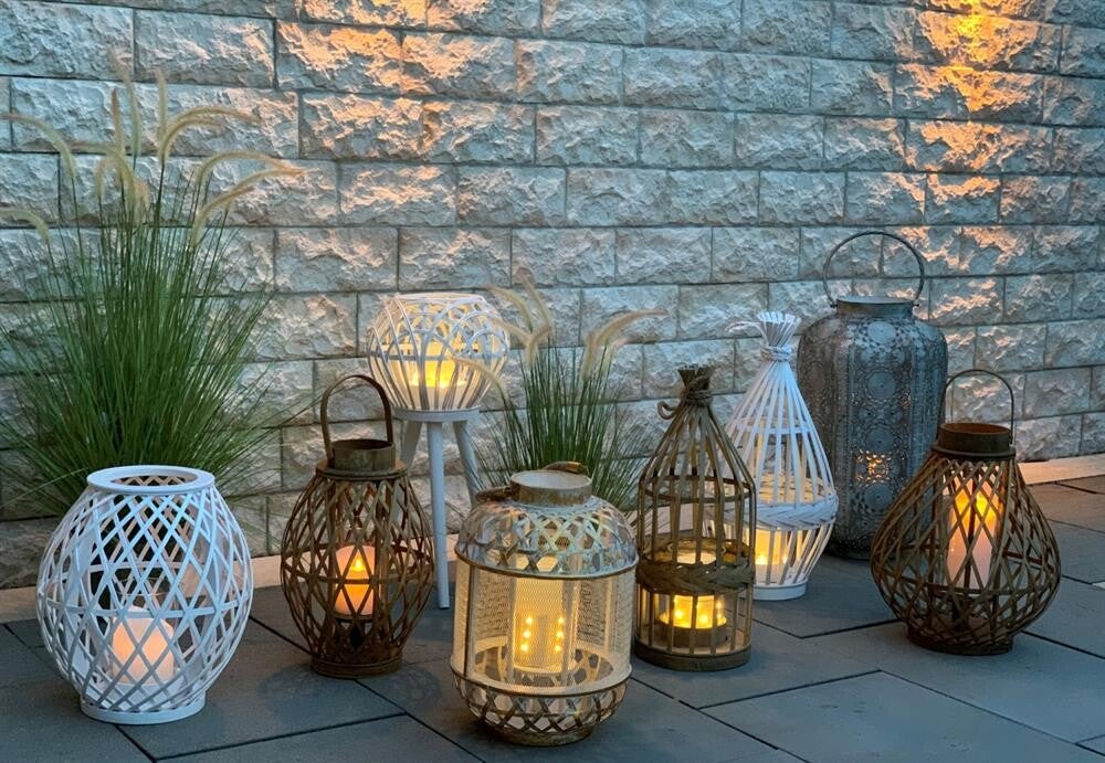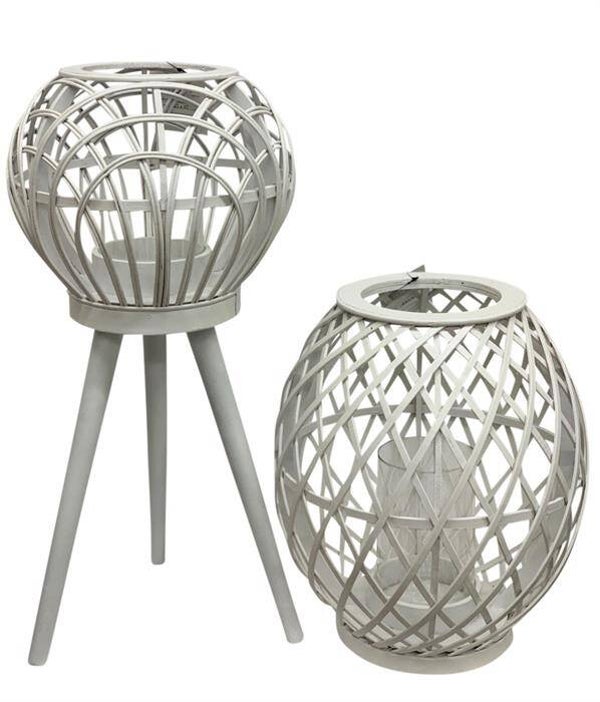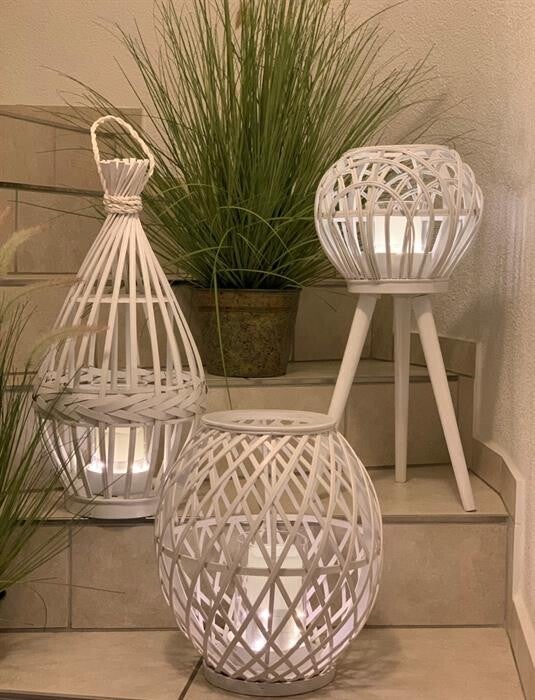 Laterne Holz aus Bambus rund mit Glaseinsatz
