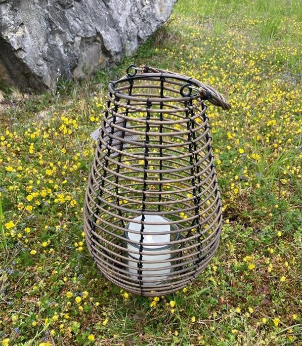 Laterne aus Metall und Kunststoff mit Henkel und Glaseinsatz