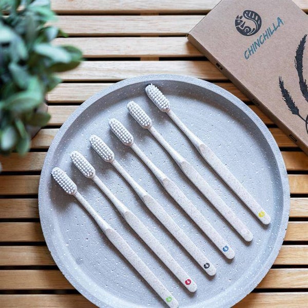 8 x Zahnbürsten 6er Set beige aus Weizenstroh und Rizinusöl-Borsten