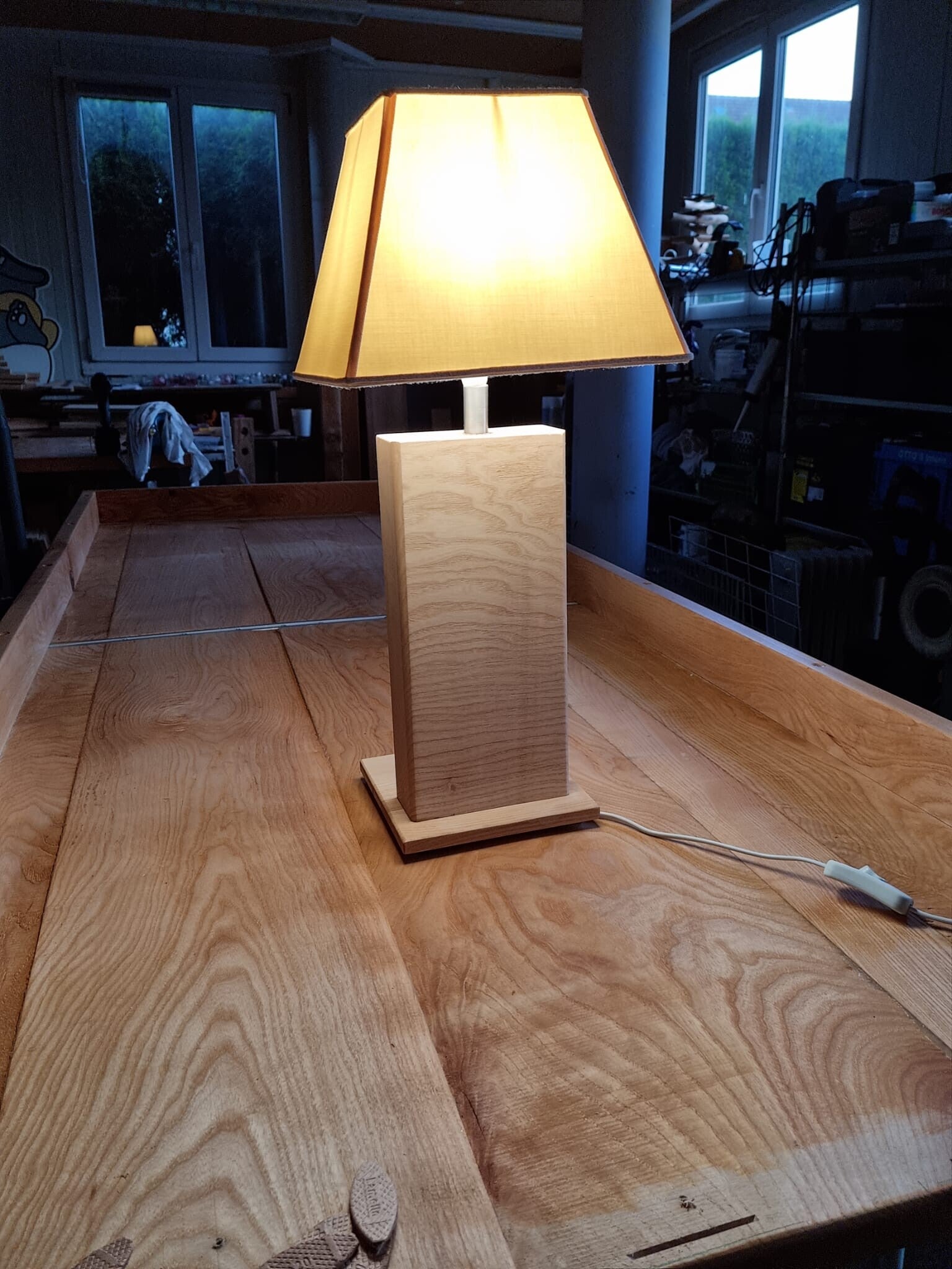 Sehr schöne von Hand gefertigte Tischlampe aus massivem Eschenholz.