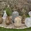 Laterne aus Bambus konisch mit Griff und Glaseinsatz